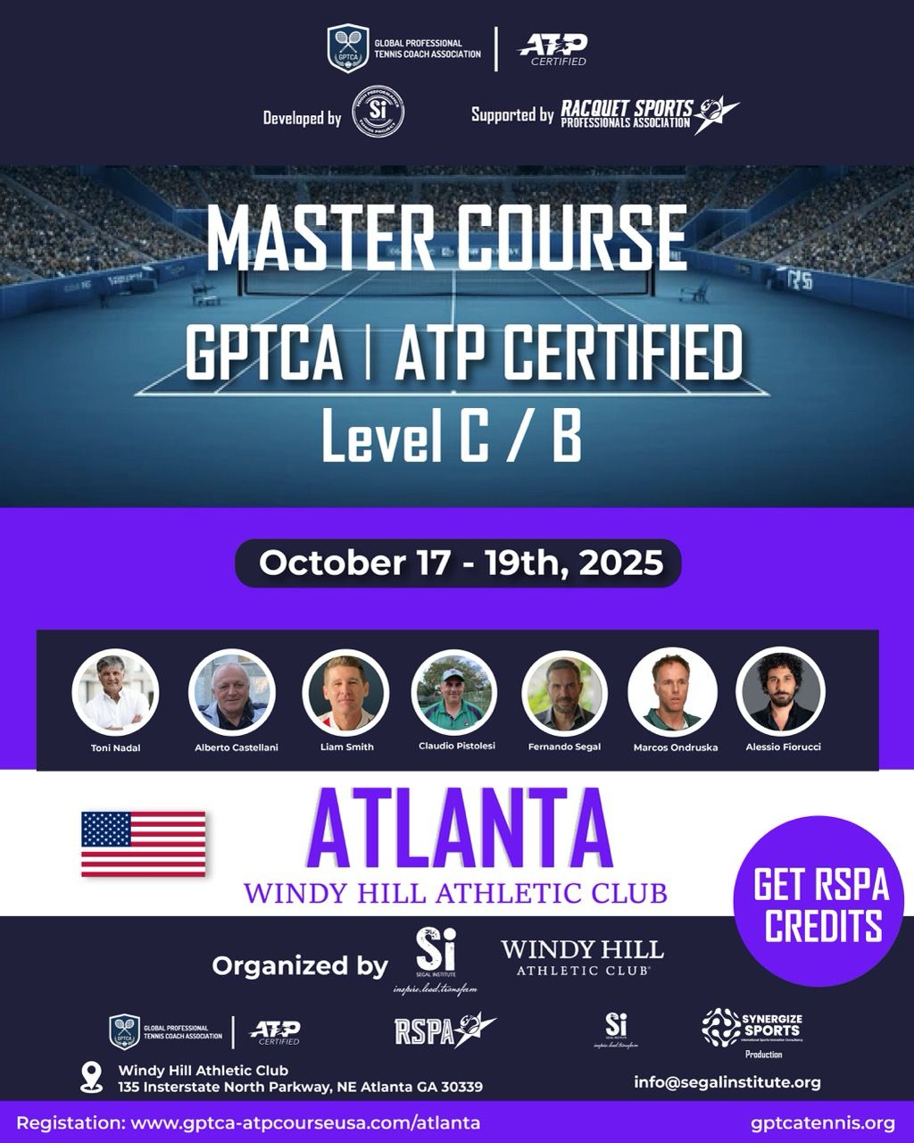 The Master Course GPTCA ATP Certified supported by RSPA and developed by Segal Institute will take place from October 17 to 19 at the WINDY HILL ATHLETIC CLUB – 135 Interstate North Parkway, NE Atlanta GA 30339